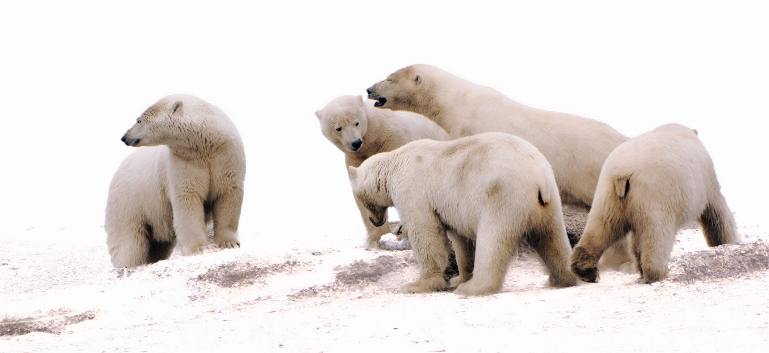 In the heart of the frosty Arctic landscape, five majestic polar bears gather, their white fur blending seamlessly with the snow and ice that stretch endlessly around them, creating a serene tableau of power and grace. Each bear, with its unique story etched in the gentle creases of its fur and the depths of its soulful eyes, brings a distinct energy to this unexpected conference. As they huddle together, their deep, rumbling growls and playful swats reveal a blend of camaraderie and fierce independence, showcasing a world where survival is paramount yet friendship flourishes amid the stark beauty of the Arctic wilderness. This extraordinary meeting is not just a moment in time, but a celebration of the resilience and spirit of these incredible creatures, reminding us of the profound connections that exist even in the most remote corners of our planet.