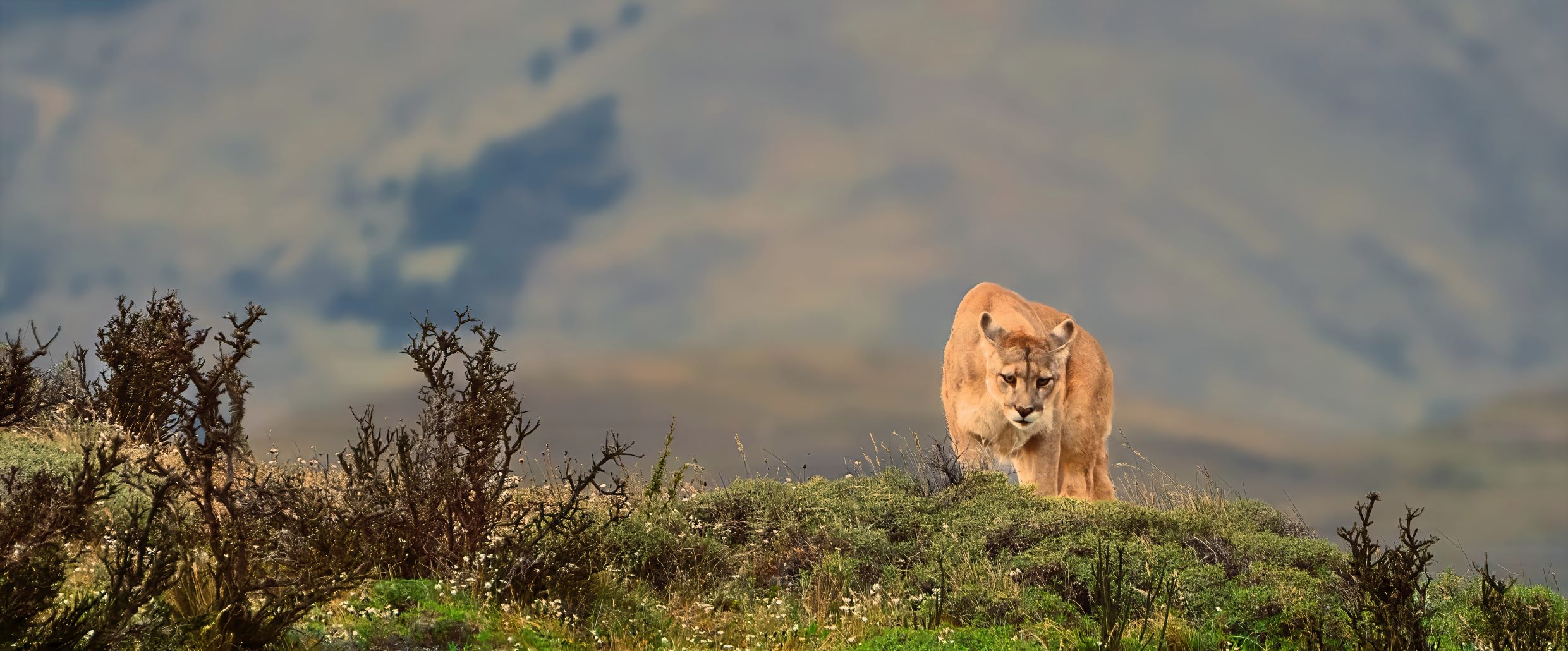 We met with our exceptionally experienced team as we arrived in Torres del Paine, where within just 30 minutes, we spotted a Puma gracefully making her way over the ridge. She approached us closely, crossing the road a mere 10 feet away before continuing on her path. The photo included captures the moment as she came towards our vantage point.